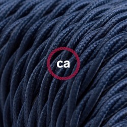 Câble au mètre effet soie de couleur bleu marine et torsade. Composez votre luminaire sur mesure de 1 mètre à 5 mètres selon vos besoins et vos envies.